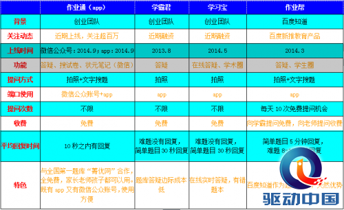 (说明:鉴于移动客户端在答疑领域占据越来越大的分量,本次测评以手机端应用为主,其中作业通既支持app又支持微信使用。所以微信公众账号和app同时参评。四款产品顺序随机罗列。)