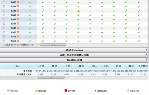 最终Salesforce.com选择了实时监控系统性能并且加以公开的方法解决这个问题。他们采用了类似于statuspage.io的解决方案,把服务可用性状态公开给用户,让公众甚至竞争对手可以看到系统每天的运行状况,他们把这个称为信任网站,地址是trust.Salesforce.com。我们打开网站就可以看到: